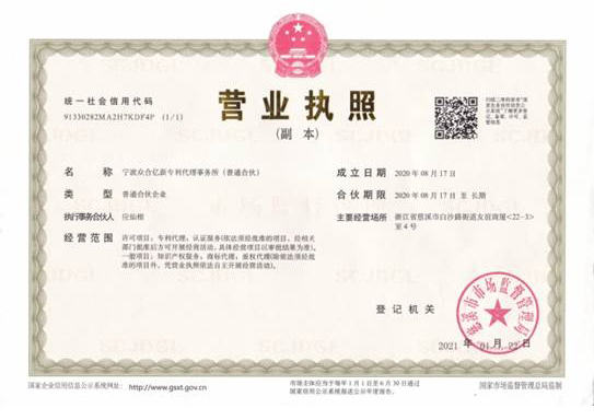 浙江億新知識(shí)產(chǎn)權(quán)服務(wù)有限公司前身為慈溪眾合知識(shí)產(chǎn)權(quán)代理事務(wù)所,創(chuàng)始于2004年,為了服務(wù)更多的創(chuàng)新企業(yè),實(shí)現(xiàn)“服務(wù)億萬(wàn)創(chuàng)新企業(yè)”的理念,后更名為浙江億新知識(shí)產(chǎn)權(quán),旗下公司包括:寧波眾合億新專(zhuān)利代理事務(wù)所(機(jī)構(gòu)代碼33405)、中范(北京)認(rèn)證有限公司。其中寧波眾合億新專(zhuān)利代理事務(wù)所是慈溪市科技服務(wù)聯(lián)盟理事單位,前灣區(qū)知識(shí)產(chǎn)權(quán)工作站。公司位于浙江省慈溪市文化商務(wù)區(qū)友誼商廈,并在北京、青島設(shè)有辦事處。